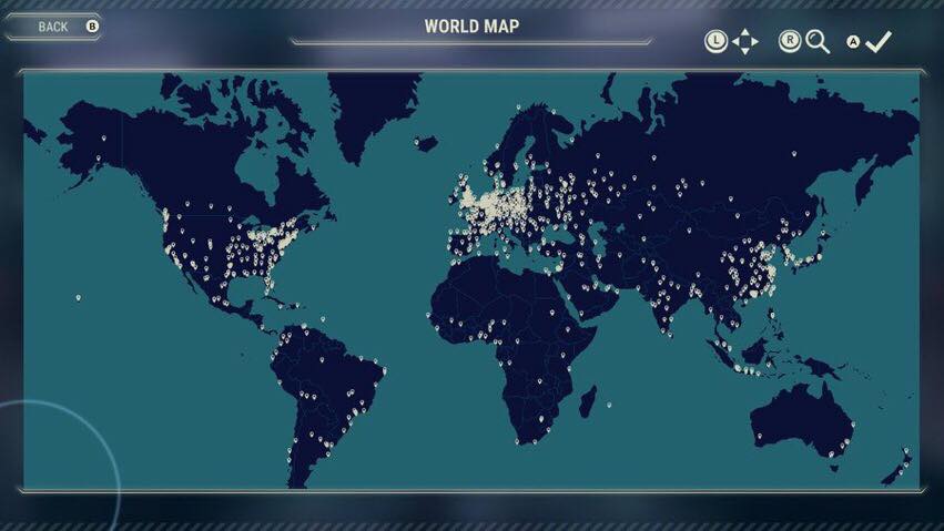 The map screen which you’ll be playing on presents players with a 2D blueprint-like layout of a city. Depending on what mode you are playing, this could be one of the 6 cities that feature in the Career mode, or just about any major city on the planet. Yes, you read that correctly – upon going into the Free Game mode, you’ll see a list of hundreds of cities to choose from. Alternatively, you can zoom in on the world map to try to find your local city to use as the backdrop of the game.