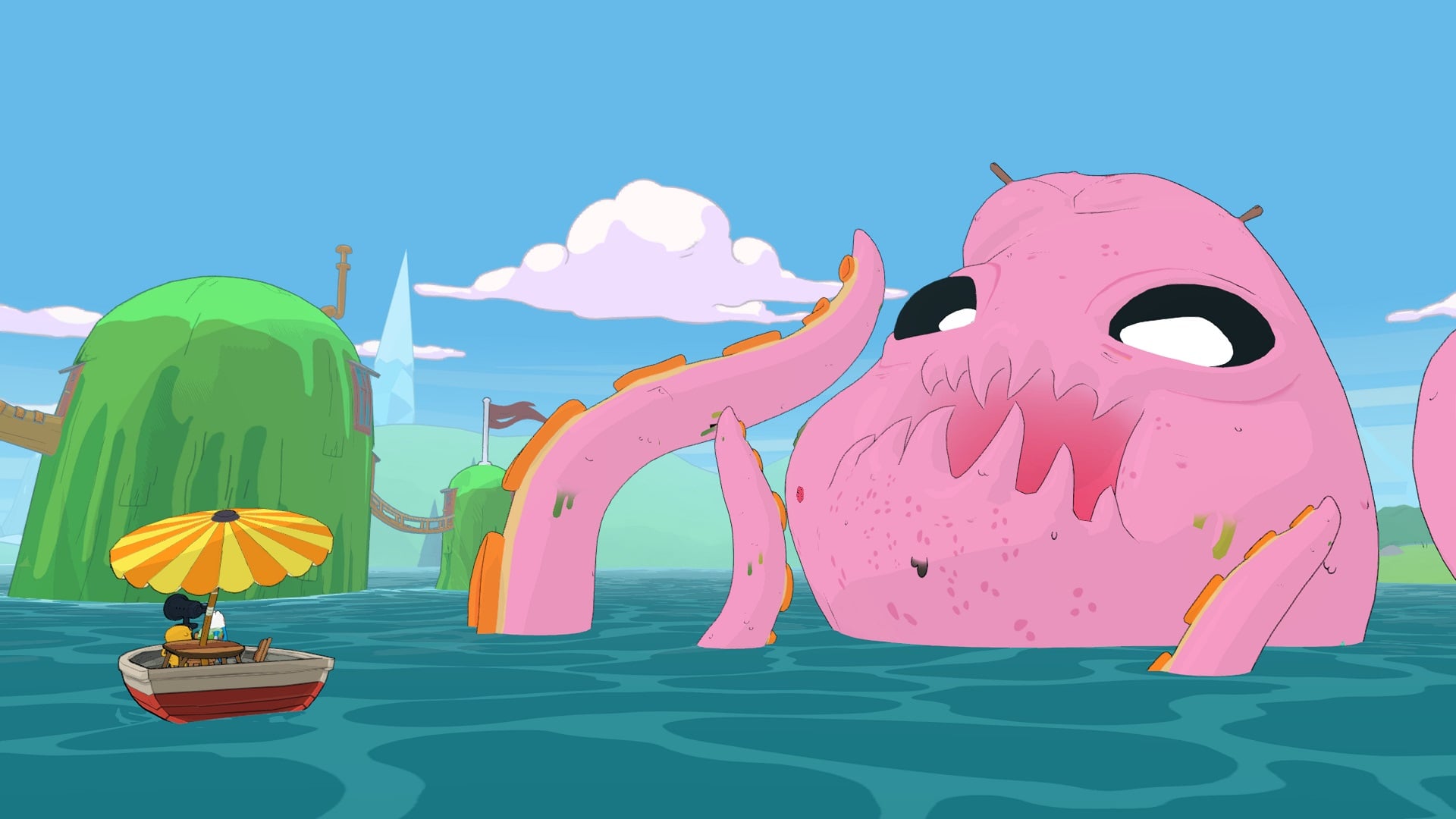 The story in Adventure Time: Pirates of the Enchiridion is nice and simple to follow yet you’re always kept on your toes as new ‘conclusions’ are suggested by Finn and Jake. One night, our two protagonists go to sleep in their small rowboat lookout tower (Yeah, I don’t know either…) unaware that their life is about to change overnight! They awaken not perched upon their house but afloat in a vast ocean – an ocean they soon discovered is actually the Land of Ooo which has become flooded. They set off to find out what’s going on.