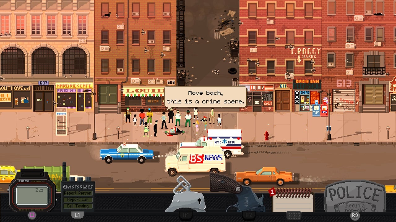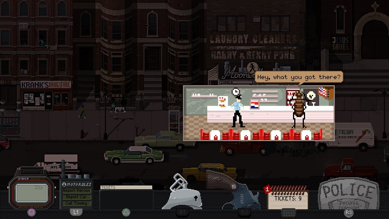 Simulation games can come in all shapes and sizes; from full-on 1:1 simulation games like Train Sim World, which has you driving a realistic train, to God-like games where you control the action as an overlooking ethereal being, such as in Dungeons III. Then there are the games which combine simulation with other mechanics in order to create semi-realistic gameplay surrounded by an adventure or a puzzle-like experience. Beat Cop falls into the former pile, it’s a well fleshed-out story which has been presented around the simulation of being an ’80s beat cop in America.