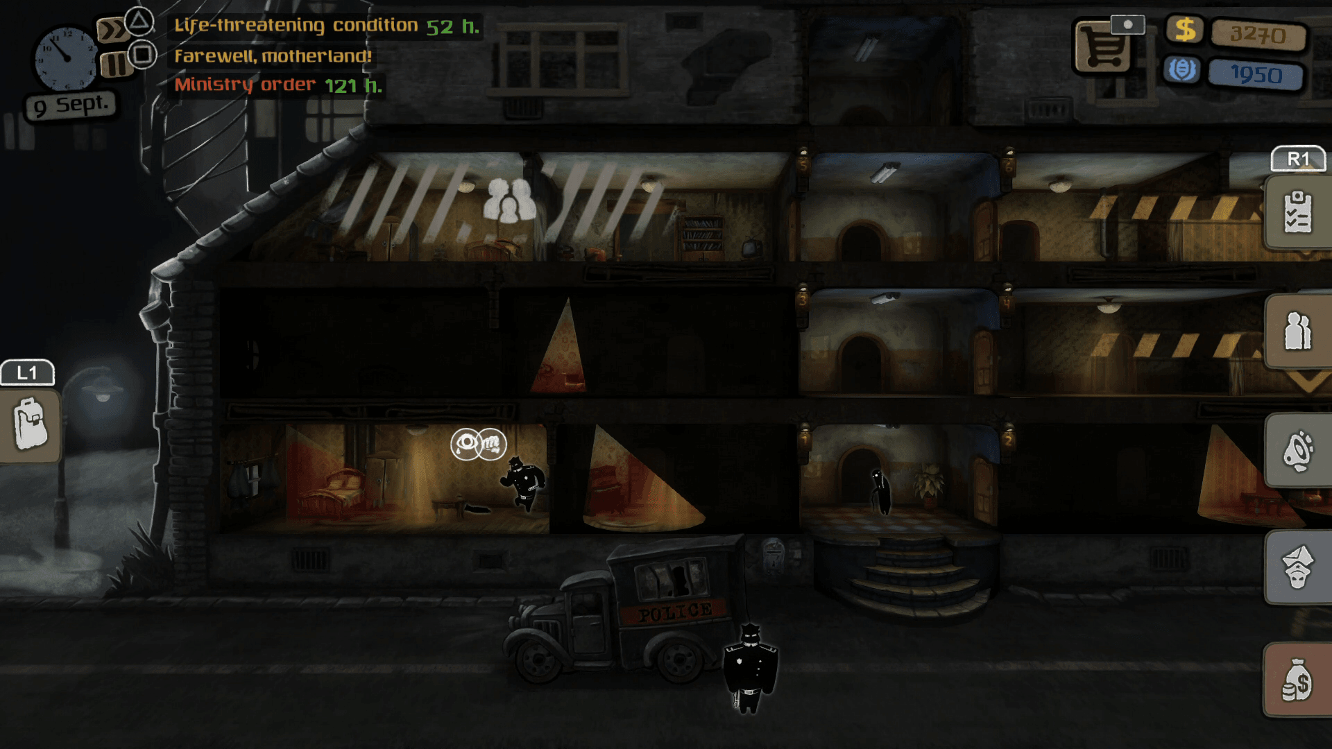 Sound wise – there is no talking, it is all text with the odd mumble so you will be reading quite a bit. The sound itself is great, the music gives an eerie tone as you patrol the apartments and even the propaganda van which you encounter later on is as annoying as it would be in real life. The only thing I would have asked for here would have been voice acting but for a small indie title, I can see why it isn’t there. Maybe if they do a sequel then they could consider some voice acting?