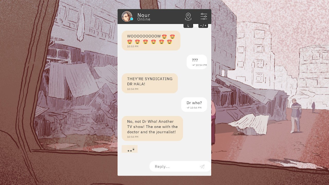 In Bury me, my Love, Nour remembers how you treat her, whether you're being nice or become jealous when she starts sending you pictures of her out drinking with her new smuggler friends. The narrative also drastically changes, offering you not only up to nineteen different endings but the actual route she takes and destination she arrives at is vastly different. This is because her moral, how she feels about you, the money she has available, and what pieces of information she has heard, all adjust and change her options moving forward.