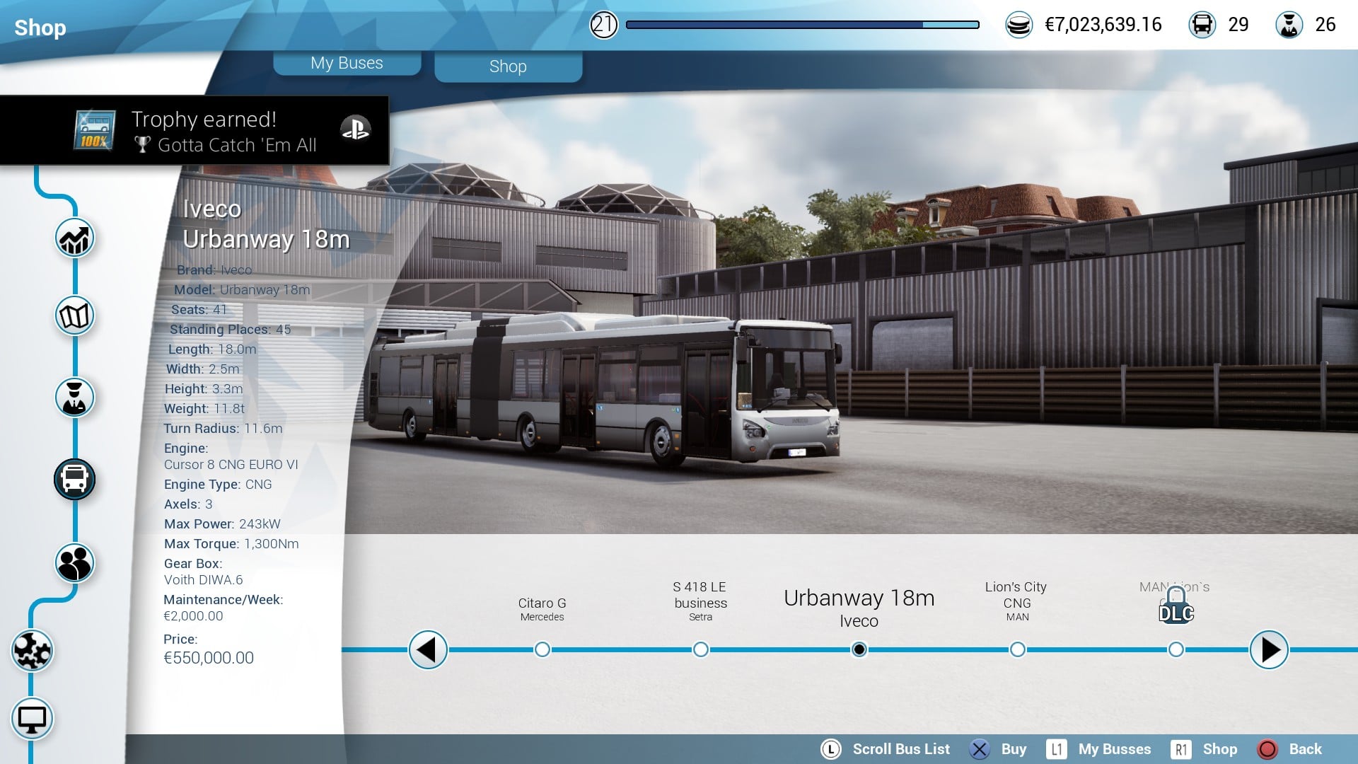 What I love about Bus Simulator is the way it handles hired minions. Basically, you could create the most elaborate route, which covers every single stop in the game, then place 50 drivers on that route and you’ll get the grand total of zero Euros per day. You see, just like in Mario Maker, you need to test the waters and prove a route is profitable (doable). So, you need to first drive the route solo and end with a positive income – something which can get quite tricky depending on how well you can drive and avoid hitting the curb and losing 30-40k in one split second of total stupidity!