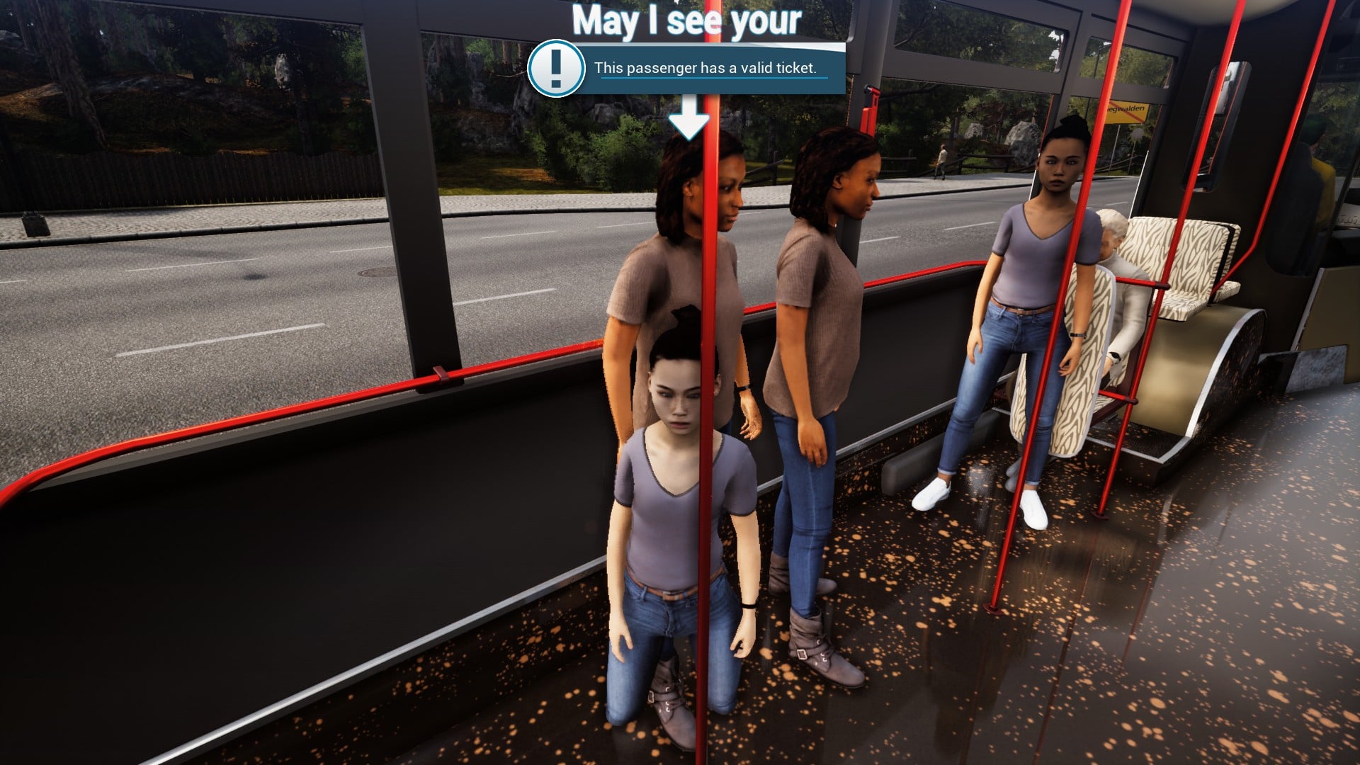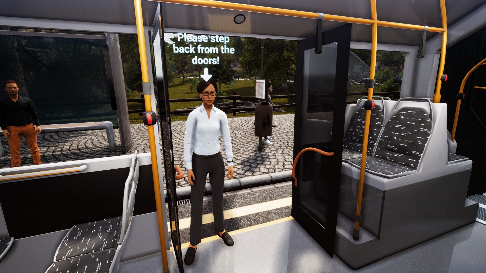 There are a few modes when playing Bus Simulator in online Co-op, you can either both operate your own buses, driving the route and bringing in as much money as you can for the hosts’ company, or you can both work upon the same vehicle. If you’re on the same one, one of you will be in control of the bus itself, going from stop to stop and avoiding the suicidal pedestrians who walk in front of you on the zebra crossing without checking to see if you’re driving into them or not. The other person will be along for the ride, literally. You’ll be harassing the passengers to check they have tickets, fining them if they don’t, and you’ll also be picking up the rubbish left behind and giving the fat-arsed people a push when they decided to stand in the doorway.Â