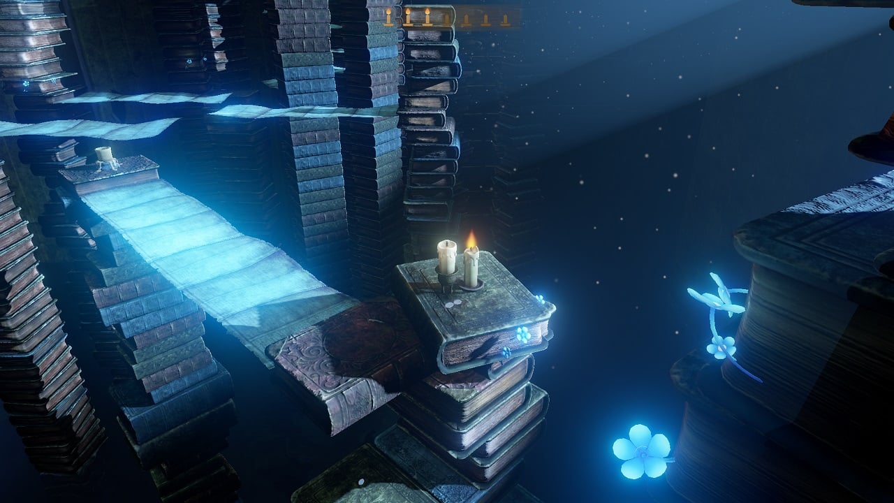 Candleman is such a delight to play on the PS4, the controls are solid and tight – if you die by falling to your death in the shadowy depths of the Levitating Library then it’s your fault and not the games. The controls are ala Super Marios Bros – Cross and Circle are your jump buttons and Square and Triangle will ignite your flame. You can also use the R2 trigger to light the flame if you wish, I use Circle to jump and R2 to spark up – it feels quite natural using those.