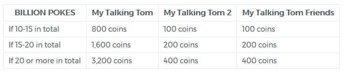 There’s no reward for poking Tom within ‘Talking Tom Cat‘ as there’s no premium currency within that game. However, if you do poke him in there then it still counts towards unlocking the rewards for everyone and it’s quite satisfying to hear him react as your prodding fingers tap away at him!