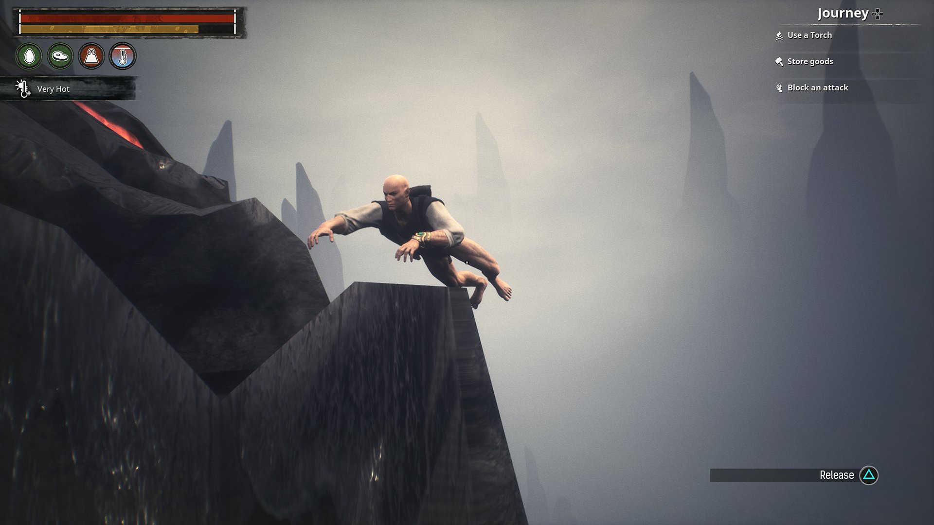 Another thing you’ll soon learn is, just like in Metal Gear Survive, you can eat raw meat for a small health increase, but you run the risk of getting food poisoning if you do it too often so you must build a stove and cook your food. I died numerous times due to eating raw meat. My Conan 2.0 must hate me as I killed him off so many times in the first few hours. My first death was climbing to the top of a massive mountain and then jumping off as I wanted to see if his ‘thing’ floated as he descended down – it did and he died in the process. but I got my answer!