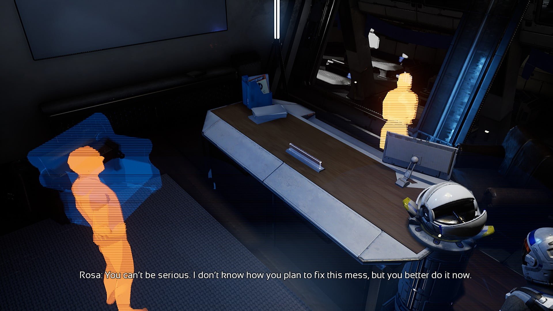 Although not with you from the start, you’ll soon come across a damaged ASE unit which you repair as best you can. This friendly floating robot becomes your new best friend as it follows you around and helps out with your investigation. With a push of a button, you can take control of the unit and move around the station’s vents and other small areas your beefy suit won’t let you squeeze into, looking for doorways the ASE can open for you or reading door codes off left-behind documents.