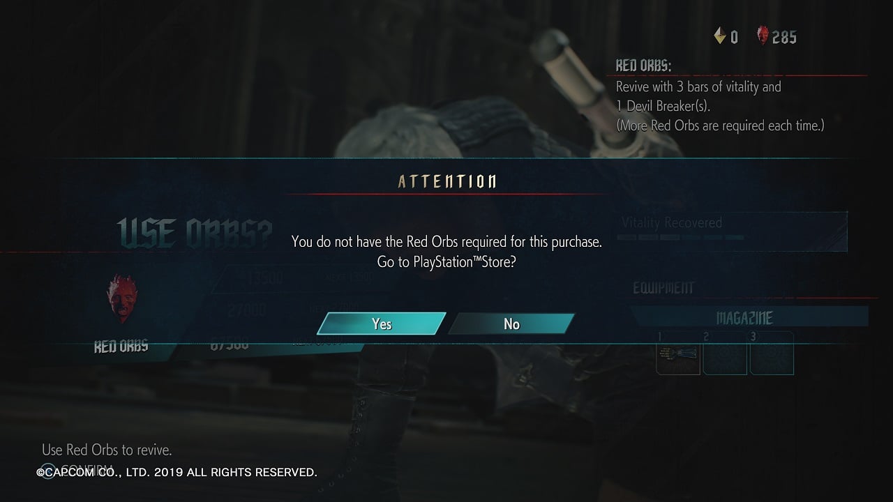 However, once you’ve upgraded your health bar, which carries over between all characters, you’ll rarely reach a game over screen outside of a few bosses. This is why I haven’t got around to upgrading V though, I save all my red orbs and don’t spend them until I’m back at the menu once I complete the level, just in case I need them. Regardless though, I would love to hear your thoughts on this mechanic/feature below. Having the option to buy reb orbs for both upgrading and reviving seems a bit iffy, but I do recall the PS4 version of Devil May Cry 4 also having them as microtransactions as well.Â