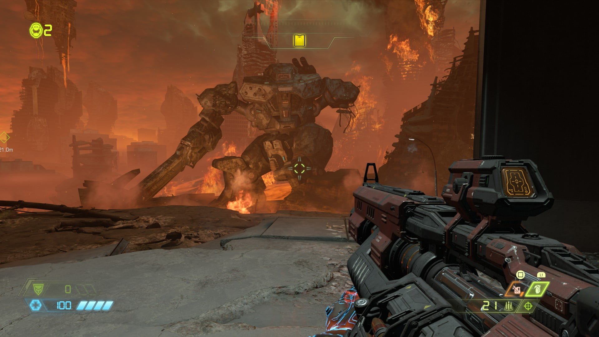 One thing I wasn’t expecting was the amount of parkour which was present within DOOM Eternal. Pretty much every location has you jumping and grabbing onto walls, dashing through the air, climbing onto objects to gain height so you can reach secret areas, and even grabbing items mid-jump so you can jump some more and not plummet to your death. I personally really enjoyed the more flexible and athletic Doomguy, but some of the jumps and ‘flying’ segments require a lot of precision, leading to your untimely death (or at least loss of 20 hit points) should you forget to grab a wall or miss-time your boost.Â
