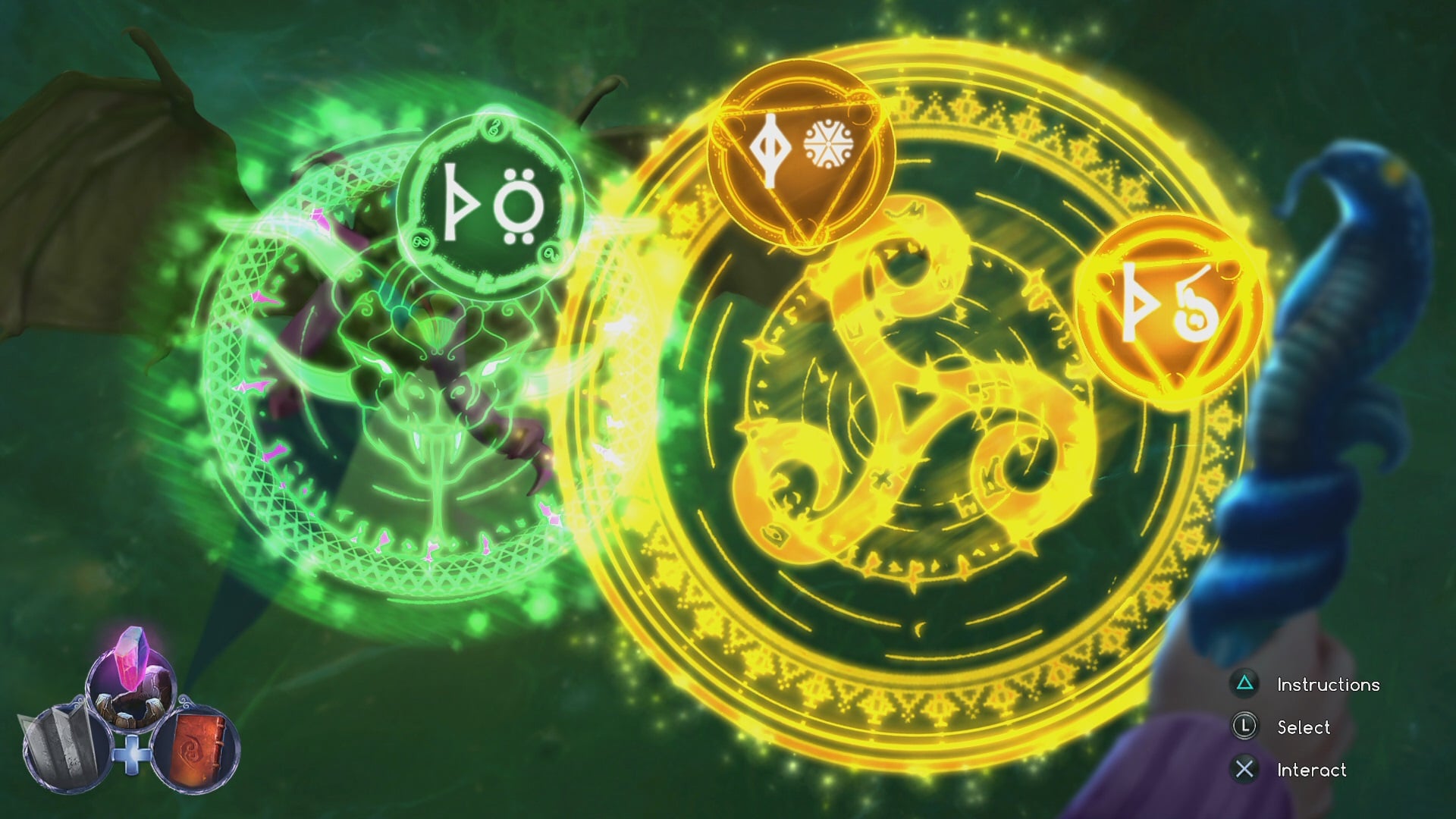 One thing I haven’t talked about is the battles which I mentioned earlier on. These return from the previous games and have a trophy surrounding performing them without making a mistake. I stupidly did make a mistake and thus, I must re-do the whole game again in order to obtain that trophy. So if you are playing the game to try and get the platinum in one playthrough, be sure to pick the right option! The battles themselves are simple enough – the enemies have a few ancient symbols and you have a few different pairs of symbols. You must pick a pair on your side which has no matching symbols as any of your opponents. There is also a moment where you have a shield and you must deflect spells being cast at you by choosing the correct directions to defend yourself in. I also made a mistake here as I was pushing the right direction but I didn’t realise you had to hit Cross to make Mary deflect it – this also went against me in order to get the trophy.