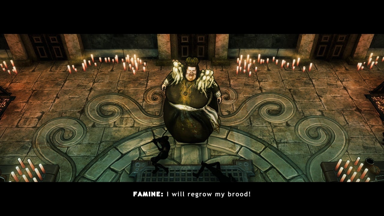 Sound wise, the voice acting is very good, from the screaming of the enemies to the fully voiced dialogue from both our protagonists and the Four Horsemen. This is combined with a rocking soundtrack which is perfect to listen to whilst slaughtering the Horsemen’s minions. Also, I can’t forget to mention the splat noise you’ll hear over and over again as you absolutely obliterate them.