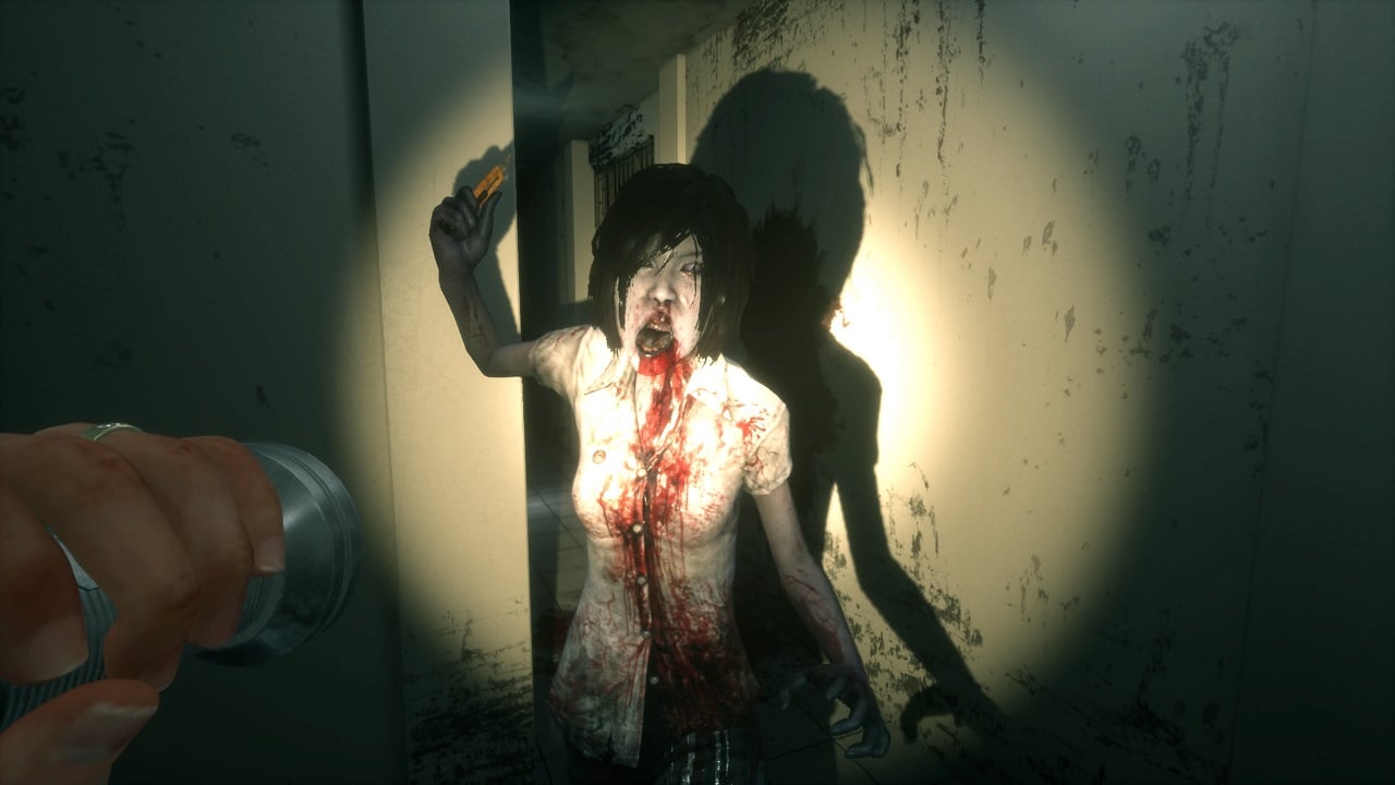 The main antagonist is a very creepy looking Asian teenage girl which has the looks to give you nightmares. She is all cut up with blood all over her body. Think Zombie meets Ghost meets Teenage Asian girl. She carries around a knife and can let out a scream which will send chills down your spine. Once she spots you, you have to RUN LIKE HELL because if she catches you, there’s a high probability you’ll die immediately. Sometimes you will go into a struggle mode with her where you need to spam the X button so you can knock her down and barely make it out alive, which is a relief but also not guaranteed. This gives you a brief amount of time to try and get away and hide.