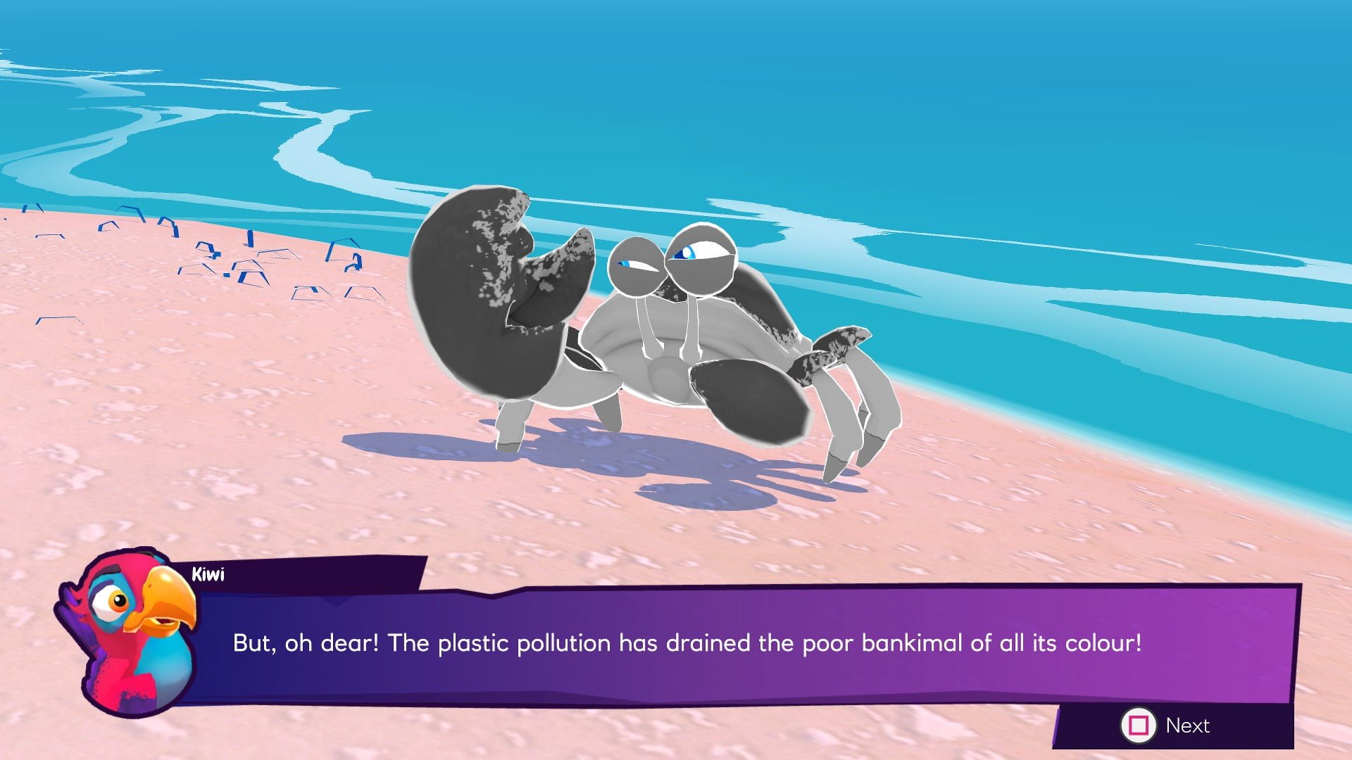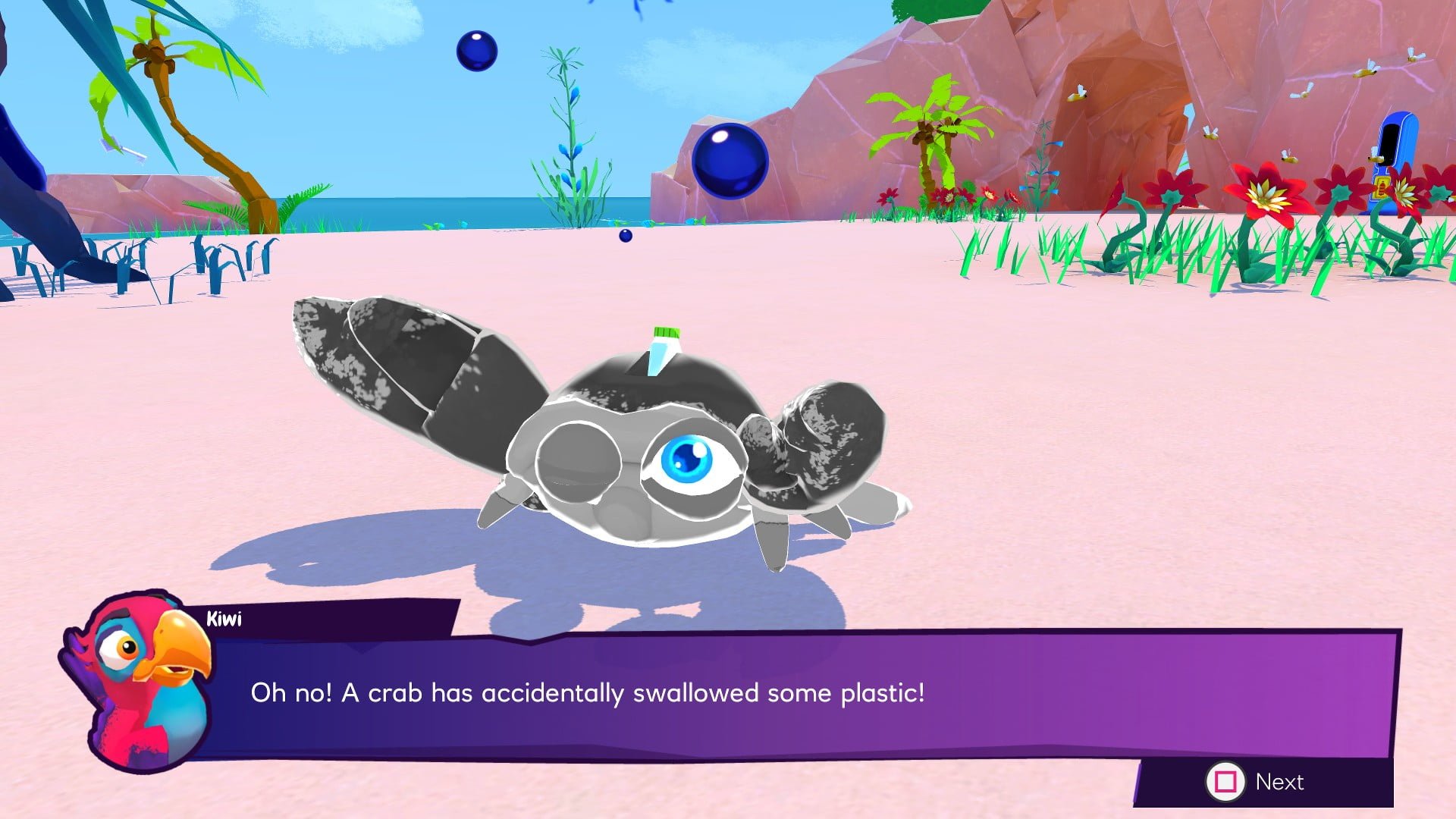 Finally, there is a hint of Journey to the Savage Planet in the gameplay, in terms of the simple Metroidvania aspect. Remember, Island Saver is a game intended to be played by 6-12-year-olds, so don’t expect difficult puzzles or complicated navigation, but it does have enough mechanics to keep things interesting. For example, you’ll unlock two animals per island which let you ride them, these allow you to get to new areas, break objects, or smash up large piles of trash. So, although the islands are linear, you do open up shortcuts and discover hidden (literal) Easter Eggs as you explore.