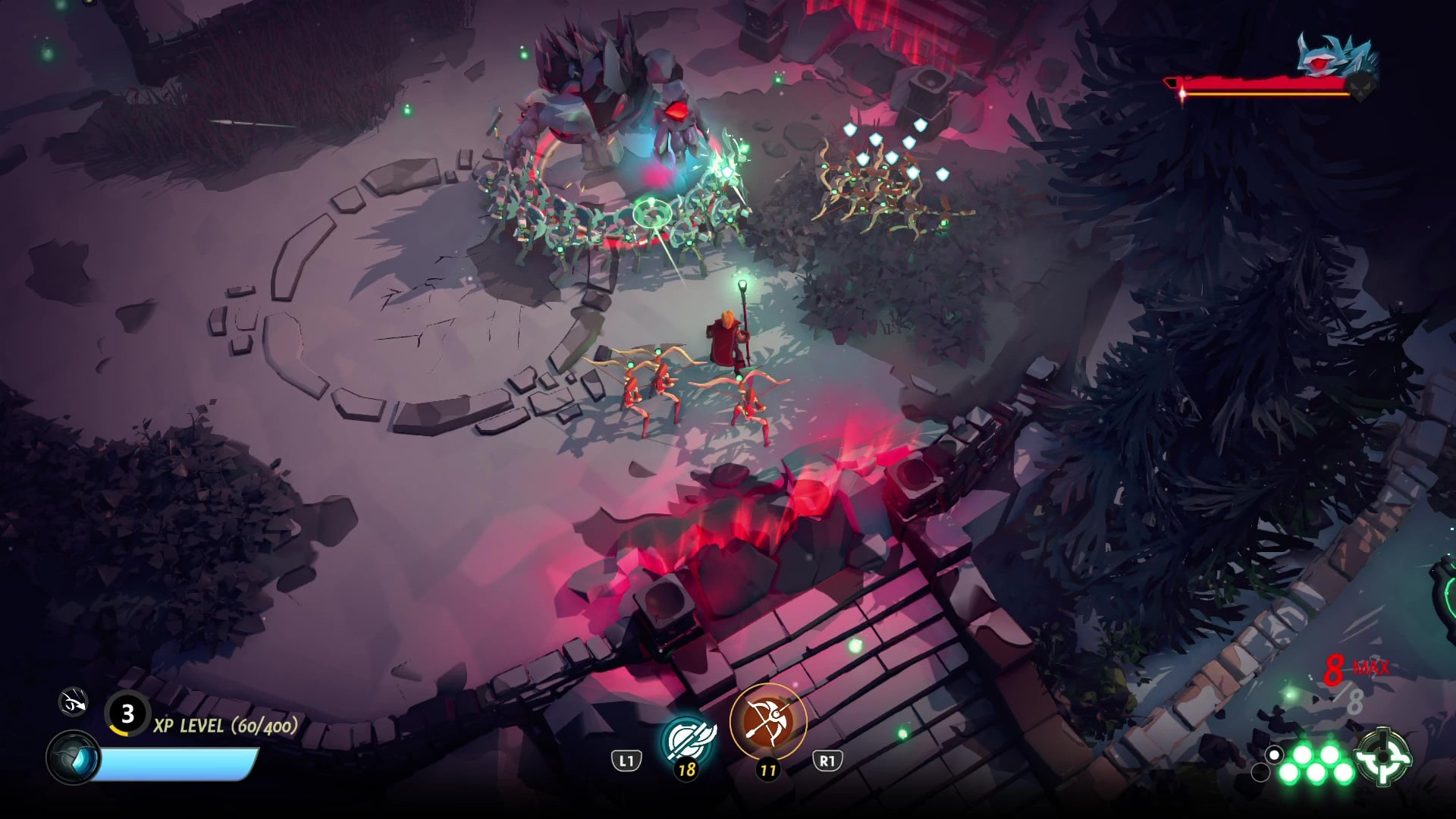 At the beginning you will only be able to summon a few groups of guardians (they come in groups of four guardians per summon), so say you had six summon points, then you could summon six groups of four in order to help you out. This means that if you wanted to use various types of minions then you must first undo some of the ones you summoned and re-summon the others without going over your allotted amount. A process that’s very similar to Pikmin with its various colours. As you progress though, the number of groups you can summon will increase and so will the amount of Anima you can store – which is very important!