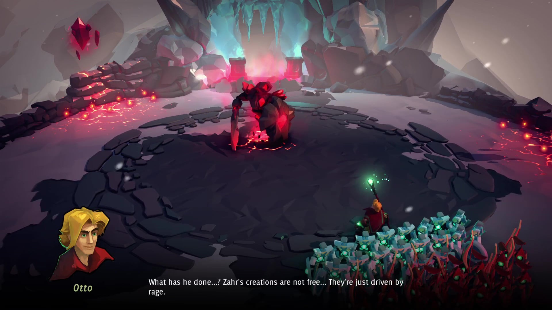 The creatures you will be facing vary a little just like the guardians. Each golem has it’s own strengths and weaknesses and choosing the correct guardians is the key to successfully taking them down. A lot of them are straightforward to begin with, summon a load of the melee guardians and some archers to hide at the back, then pull back the melee ones as the golem unleashes its big attack, followed by sending them back in. Later golems will require you to take them out with differing proportions of guardians. So, some may be weak against archers which means getting the melee ones to form a wall whilst you shoot from a distance is the way to go.