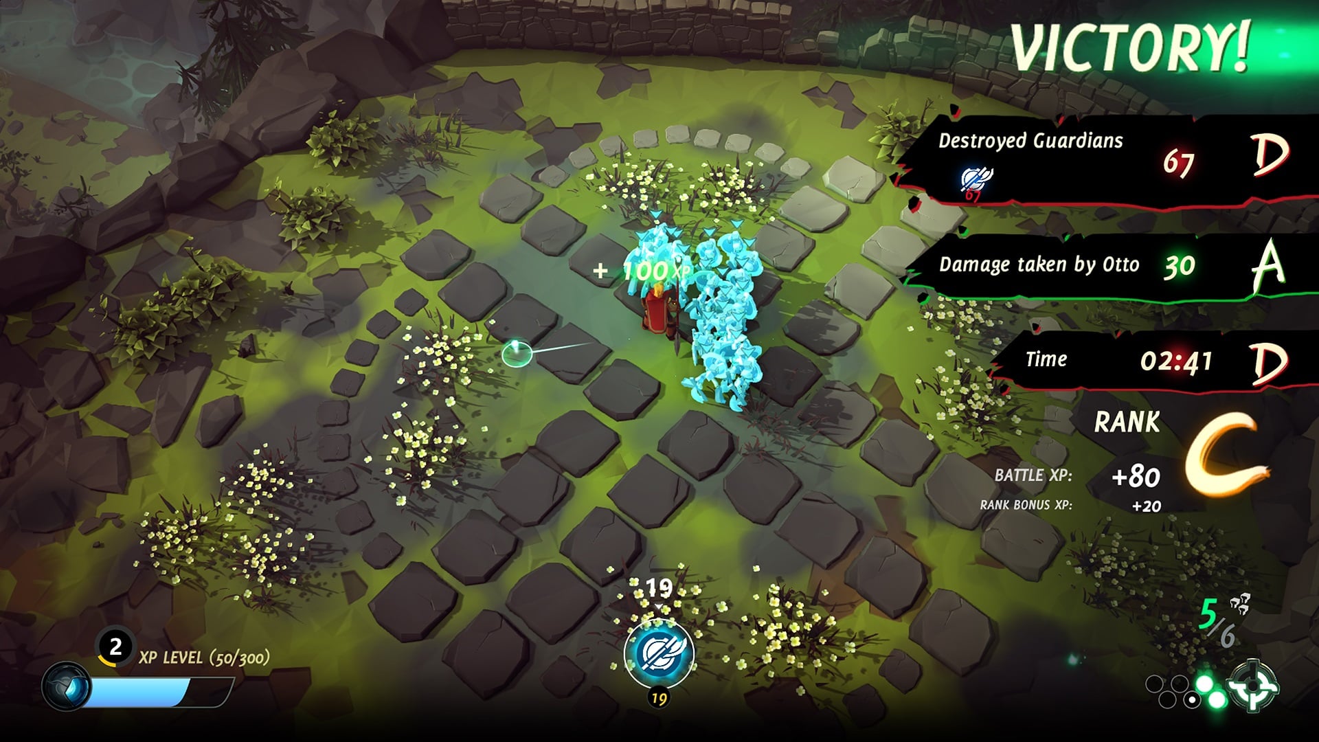 Speaking of the strategy involved, the game does a great job of teaching you the strengths and weaknesses of your various guardians as you unlock new ones but if you’re unable to comprehend what’s being told to you then you are going to struggle in later fights. For example, you are shown how to correctly position your archers in the bushes so they gain cover and lose visibility from the golems, who can take them out in one hit. Also, how to call back your melee guardians just before the golem does a powerful attack and knocks them all over.