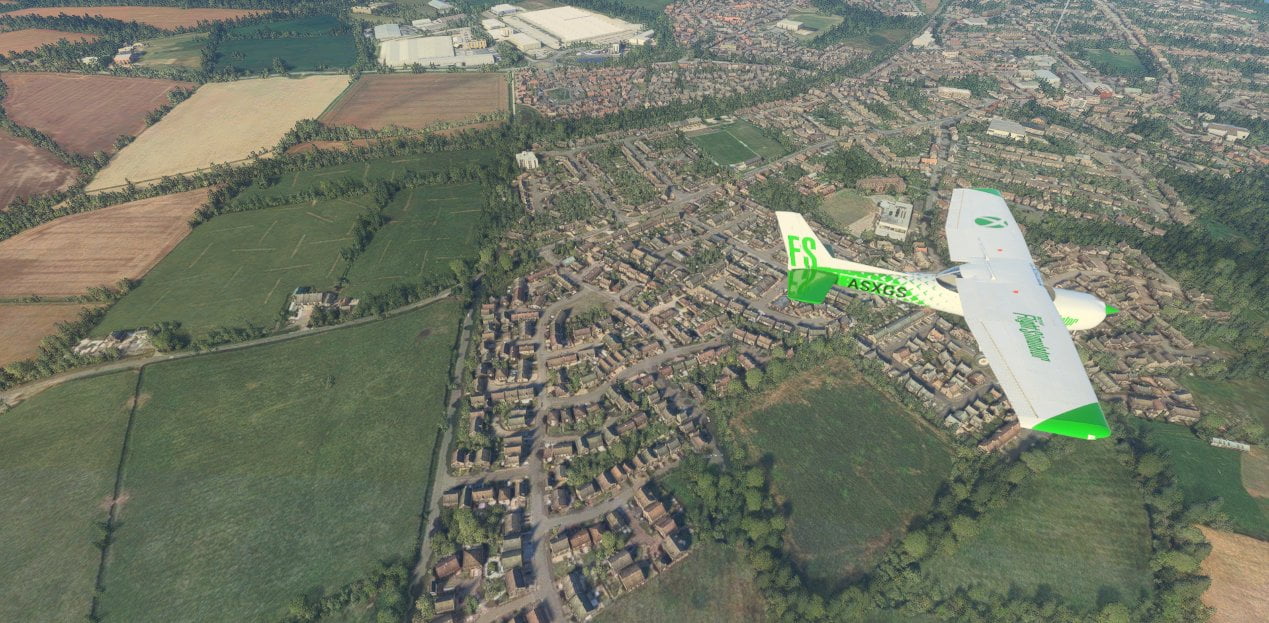 The world is my oyster, I can go anywhere and see anything I wish, so of course, my first flight had to be to a small town in the middle of the English countryside to visit my house! Before the release of the Microsoft Flight Simulator, I had heard all about how the game integrates ground satellite data and Microsoft’s own Azure AI into the simulator’s engine to generate near-photorealistic scenery and locations. The game offers 37 thousand airports, 2 million cities, 1.5 billion buildings, real mountains, roads, trees, rivers, animals, traffic and more, but can it get the layout of my town, specifically the location of my house, right? I of course wasn’t expecting it to be perfect and knew my house wouldn’t look how it should, but would it be clear enough for me to locate it with ease, and did it even exist?
