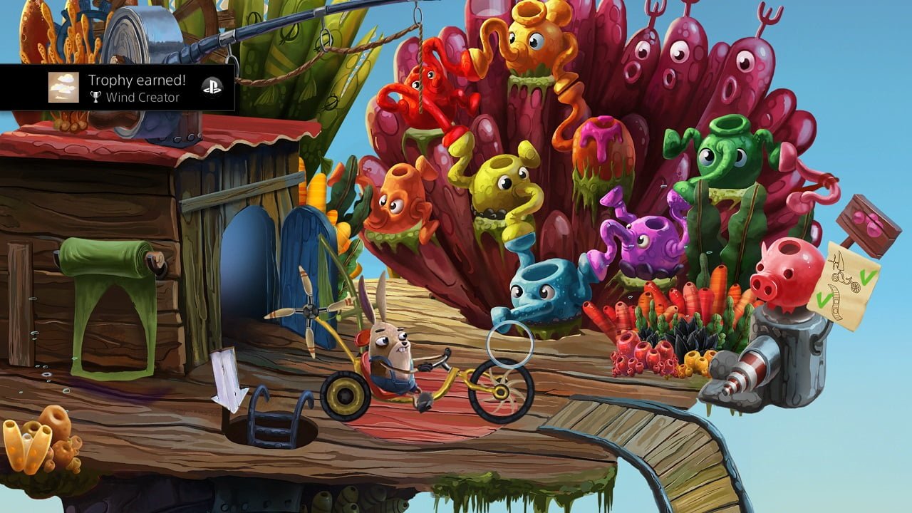 I personally really enjoyed playing through My Brother Rabbit. In total, it took me around four hours to complete it the first time and about one to two hours to go back and find the missing trophies, as there are quite a few you can easily miss if you weren’t aware of what to look out for. However, for the trophy hunters out there, there is a level select so you can easily go back and forth if you miss anything and the game is completable in one sitting if you keep in mind what requires a trophy. I was really impressed with the number of puzzles and random things you can click on throughout the five levels – sure, the puzzles weren’t too difficult (damn colour wheel!) but it didn’t slow down the pacing of the game or frustrate me to the point where I didn’t want to play anymore. I wanted to carry on and see if we could cure this little flower!