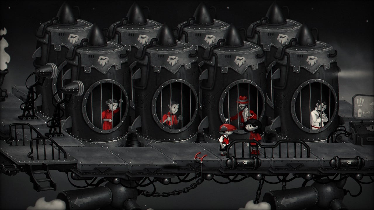 Early on, the girl in his story is ‘tagged’ and coloured in red, along with her grandfather and a bunch of other people – these people are segregated and ridiculed by the non-tagged citizens of the town as well as becoming hunted by the robot invaders. Working as a pair of swappable protagonists, we have control of the ‘normal’ boy and the ‘tagged’ girl as we alternate between the two to achieve our goals in this re-imagining of the horrible events which were actually happening in Poland during World War II.
