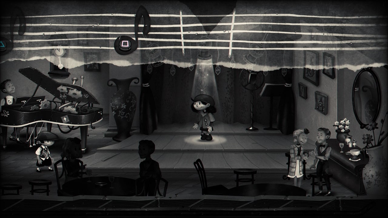 My Memory of Us is visually an incredibly artistic game. The format of the art design reminds me of Sin City, with its black and white aesthetic that has red-coloured items presented in a really bold blood-red in order to make them stand out, just like how these people would have stood out in real life. One thing which did surprise me is the size of the game on the PS4 – the game clocks in at over 18GB in size, this seems massive compared to similar indie games as I was expecting about 4-5GB at most. However, there are lots of environments, all of which are hand-drawn, along with assets that were most likely created at a high resolution, as every single one looks so clean and crisp on my TV.Â