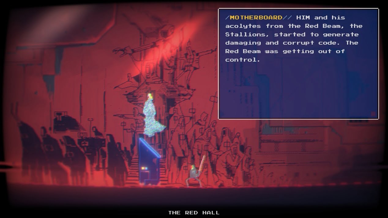 Throughout this action-platformer, which is very reminiscent of games within the Metroidvania genre and inspired by the likes of Castlevania and Another World, you will come across many imaginative NPC characters within the Digital Kingdom. Through these you learn more about the lore of the digital dimension and that in order to stop ‘Him’ you will have to traverse through the three Houses of the Trichroma and follow the code lines of the Creator to unlock his memories. There is much more dialogue within the game than I expected there to be, at first it can seem a little overwhelming as it is quite techno jargon-heavy, however, it does an excellent job of creating a living world within the computer game itself.