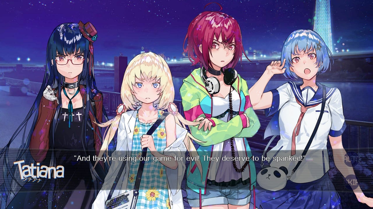 Are you still with me? Great! I’ll talk about each of the main protagonists below, but there is a common theme within Our World is Ended, big boobs are great and girls with small boobs aren’t even worth bothering with. Now, before you get your panties in a twist, this is because the guy who founded Judgement 7 and his friend, Owari and Iruka No. 2, are two massive perverts. The game hammers on about this over and over again. They’ll demand the 16-year-old with massive boobs engages in ‘Big-Breast Sumo’, create AR kits that put all the women in swimming costumes, design their in-game enemies on perverted tentacle monsters which only likes women with big assets, and even program voice controls for the AR headsets which sound like you’re receiving pleasure. They are self-proclaimed perverts.