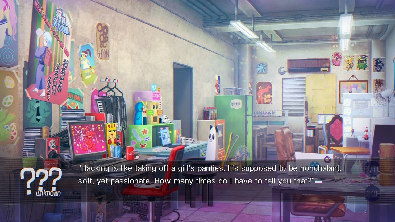 Our World is Ended was such a joy to read through. I still feel 428: Shibuya Scramble is my favourite VN of this generation so far, as it’s a masterpiece with its visuals and unique time-based cryptic timeline, and I love Death Mark for the themes it covered. However, this game joins them as one of the best of this generation in terms of its borderline offensive dialogue (I have no idea how they got away with a lot of the things it says), the humour, the interesting take on a Matrix and Inception combination, and creative narrative. Now, the humour isn’t for everyone, as I said earlier, so let’s touch on that…