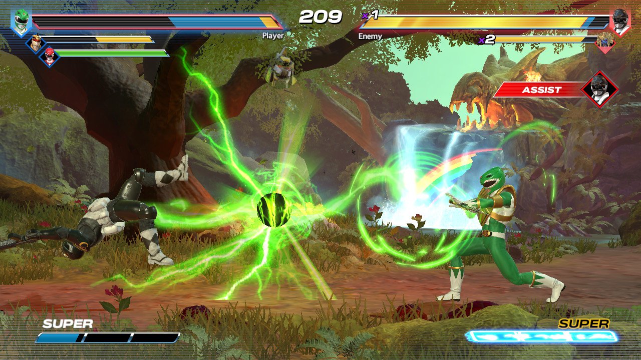Just like with most modern fighting games, the more you hit (and get hit), the more a special meter fills up. This allows you to unleash much more powerful attacks such as the Green Ranger calling his Zord to shoot missiles at his foe. Speaking of which, you can also pick from three ultra attacks, Dino MegaZord, DragonZord or Mega Goldar. These are charged the same was as your special attack and can be unleashed once per match. Unfortunately, it sounds better on paper than it is in reality – it just means that once you summon them, you’ll see their arms, legs, fists, or tails smash the opponent for a few seconds. The enemy also has its own summon which they’ll use against you during the fight.