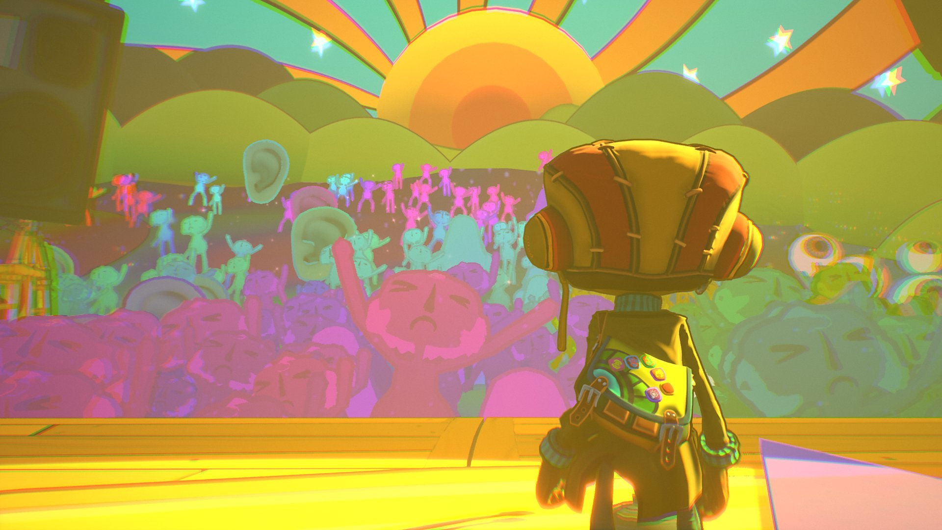 What helps to compliment the visual distinction between Psychonauts 2’s levels is the ever-changing soundtrack. Each area’s music feels distinct and suitably relates to the theme of the level. The previously mentioned, 60’s inspired rock band level has, as you would probably expect, a trippy 60’s jazzy rock soundtrack to it and concludes with a rather catchy song that includes a special guest appearance.