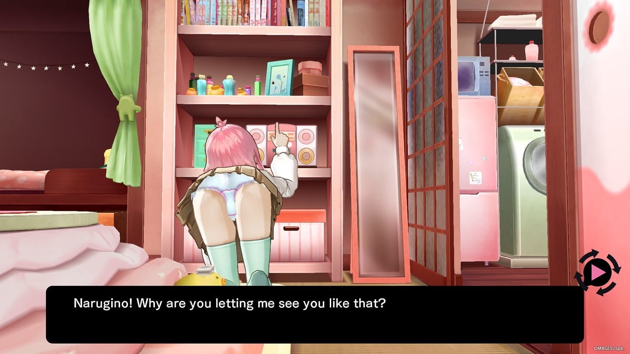Just like in real life, if your eyes catch a glance of the provocative panties, you instantly become mesmerised by them as you slowly get closer and closer, unable to look away or resist their alluring appearance! As such, you must avoid eye contact with the forbidden fancies by quickly shoving the control sticks to the side and pressing L1 or R1.