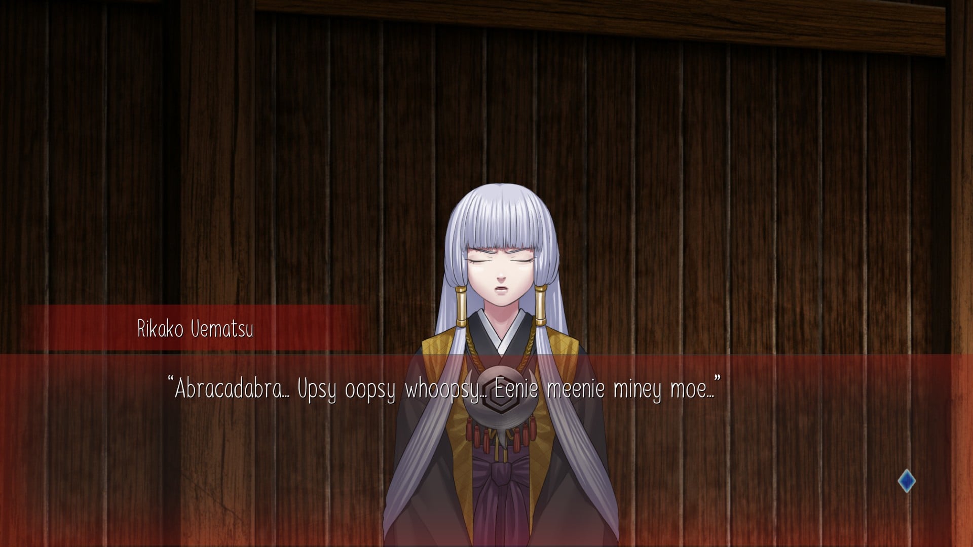 This is the best feature I’ve ever seen in a game, any game, of all time! Basically, once you complete the main game you’ll get this option in the settings menu, activating it allows you to play the entire game again with new perspectives. Almost every chapter and scene will now allow you to read the thoughts of the people you meet, experience what the wolves are doing whilst you’re asleep, gain hidden humourous messages from chibi-Rikako in every death sequence hint screen and more.Â