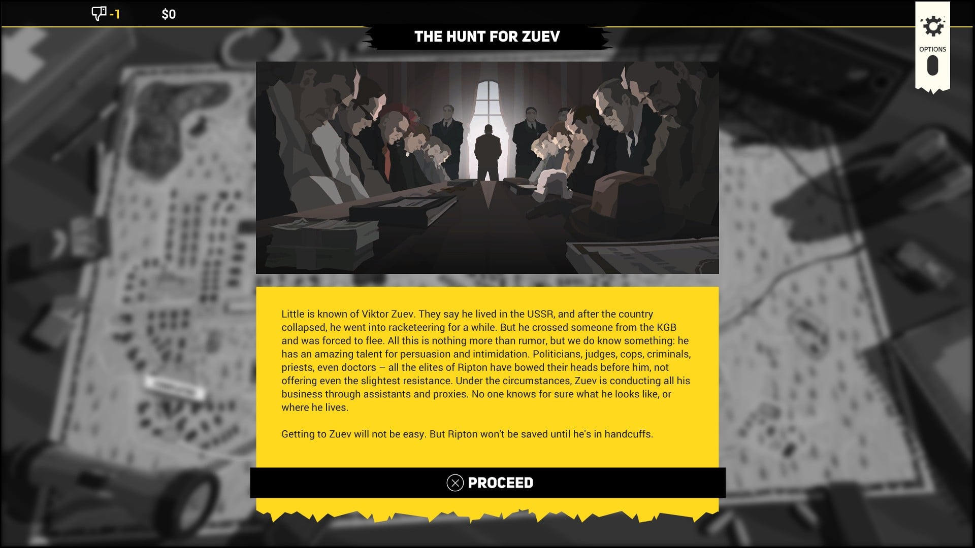 So, what is the story? From my understanding, there’s a criminal mastermind who goes by the name of Viktor Zuev, a Russian who crossed someone from the KGB and was forced to leave the motherland. He ended up in Ripton, a small town which he apparently now runs as he has all manner of politicians, officials, cops, criminals, and judges under his control. However, nobody has actually seen the infamous ruler personally, all of his dealings and trading takes place through proxies and assistants, making his true whereabouts a secret.