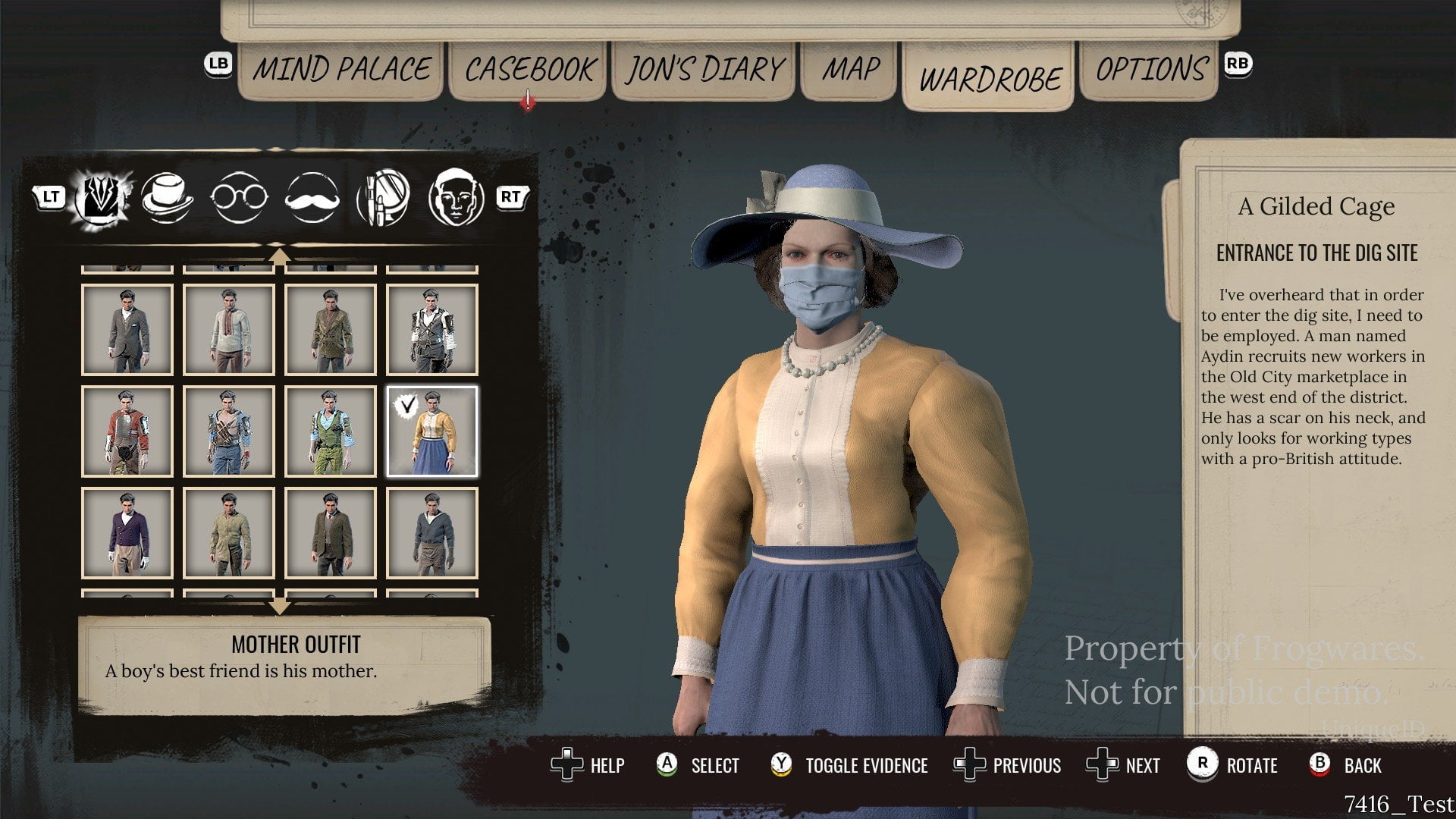 In previous Sherlock Holmes games, most notably The Devil’s Daughter and Crimes & Punishments, you had to change your clothes, accessories, and facial hair in order to blend in with certain people whilst trying to solve a case. You were given a small number of options to choose from and a vague clue as to how you should look if you wish the story to progress. Sherlock Holmes: Chapter One takes this mechanic and expands on it, making it a much more intricate mechanic within the game, one which I happily spent a few hours experimenting with to see how the dialogue changed in certain circumstances.