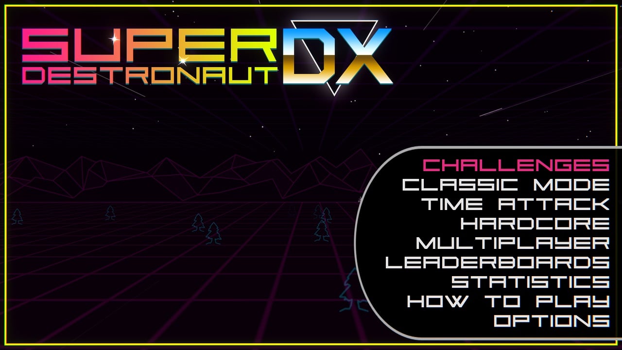 Super Destronaut DX has five modes in total, including a local multiplayer mode, all of which offer similar gameplay to one another but with a few small changes. There is also an online leaderboard – which appears to be populated by people with incredibly high scores! Seriously, the top person has almost four million points in the classic mode yet I’ve only managed to amass 300k. Similarly, the Time Attack mode has a leader with over a million points whereas I stand at 28k! I’m clearly not very good at this game in comparison to some of the other people out there.
