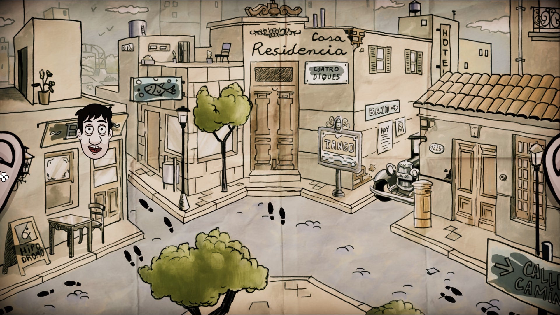 While you play Tango: The Adventure Game there is music playing, which I assume is Tango (I later realised it’s all music based off Carlos Gardel, so fans of his work will get more enjoyment than I did). Now, I’m not much into ballroom dancing, but I thought Tango was dancing rather than music… I would personally have preferred to have voice acting rather than the music, as there is no voice acting at all within the game. Having to read all the text with no voices, or at least squeaks or mumbling from the characters, left the game feeling too old fashioned for my liking. The music is fine and all but I didn’t notice much change in it throughout my playthrough, this left it feeling a little lacking in personality when you pair it with the lack of voice acting.