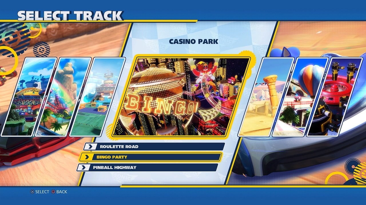 If I said I wasn’t disappointed that we lost all the iconic SEGA characters and reverted back to Sonic-only franchise characters, I’d be lying. However, I feel there’s a decent variety and something for everyone. Each of the teams has a Speed, Technique and Power ‘type’ character, all with varying stats based on Acceleration, Boost, Defense, Handling and Speed. Not only that, you can unlock a bunch of car parts in order to create the perfect karts as each component alters your stats based on the part you use.