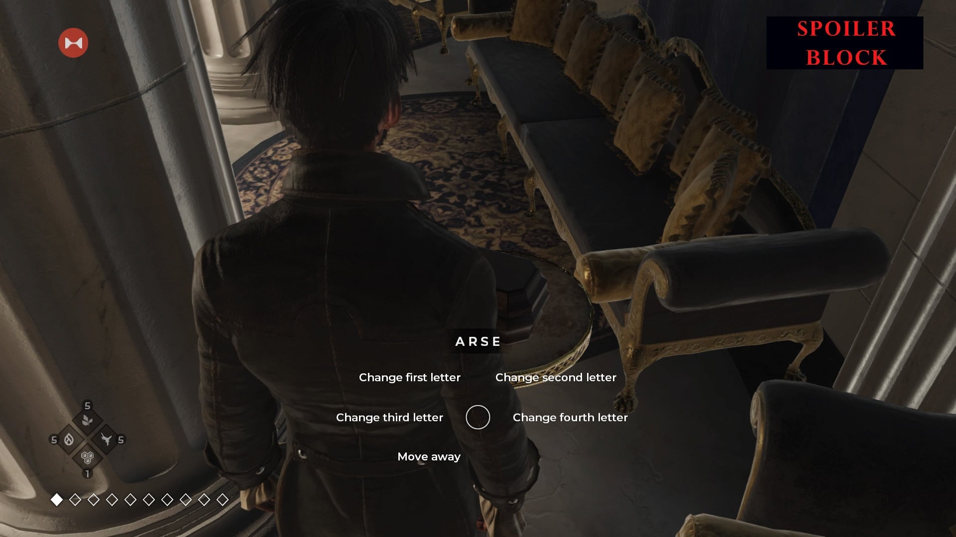 After a day of thrilling excitement, puzzles and investigations, you decide to wind down and take up Miss Adams on her offer to be a shoulder to cry on. She invited you into her room under the pretence that she needs your help and wishes to lay her troubles on you. However, this leads to a few drinks, drinks which you find out were lined with drugs. You end up passing out and thus begins a new day. As you awake, you notice blood on the floor and all around you – what the hell had happened? Suddenly, you see the tragic incident – Miss Adams lies there, dead in a pool of blood with multiple knife wounds in her body and the bloody knife on the ground. Without warning, in bursts various people who see you stood over the recently deceased; then the episode cuts… Onto Episode Two: Hide and Seek. The episode begins with us finally introduced to our host, Lord Mortimer, although we wished it was under happier circumstances. We aren’t participating in a friendly chat, rather an interrogation as we are believed to be prime suspect number one. We have no alibi for our night, as we were with the late Elizabeth Adams, and we were found over the dead body by multiple people. As such, we are treated as guilty for the most-part of Chapter six and thus we are locked out of certain information about what had happened. Once we manage to clear our name, the story arcs back into the ‘common’ thread below.