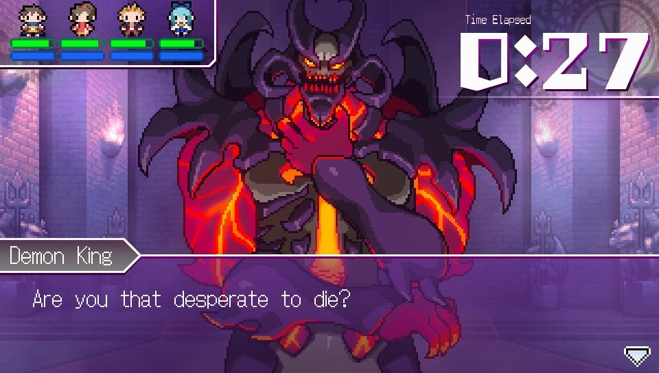 The Longest Five Minutes opens up with our protagonist, Flash Back (Seriously!), and his adventure buddies as they are facing off against the games end boss. There is one small issue though, Flash has instantly been inflicted with a form of amnesia which has wiped his memory of any of the events leading up to this moment. Here begins your longest five minutes ever. The story is now split up between you making dialogue choices during the boss fight and travelling back in time, through your memories as you relive the events which impact you in the present. The memories you will recall take you through various dungeons, meetings, training segments, and even completing simple side quests for NPCs.
