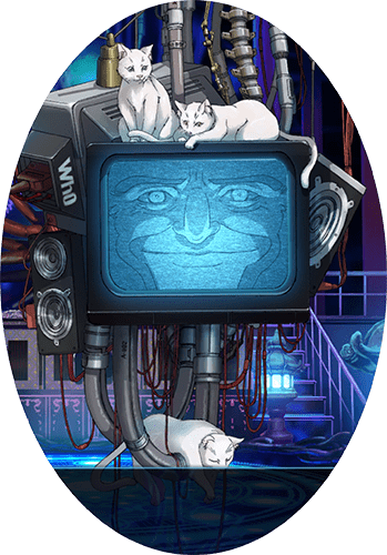 Finally, we have Chodenji, a cyber-church which is run by the Cyber Priest. This area is unlocked later on into the game after you reach a certain part. Remember above how I said Astrals will hit a level wall which the Priest must break them from and allow them to evolve – well this is the place. As long as you have enough money and the correct item, you can evolve to the next stage, receive a new skill, and begin to level up once again. You can also swap skills with different Astrals and pay to manually reset an Astral to level one without evolving if you wish. If you do, the base stats are greatly increased as you proceed to level up the Astral once again. The Cyber Priest is also very, very fond of cats – he has them running free all over the place and sitting upon his head!