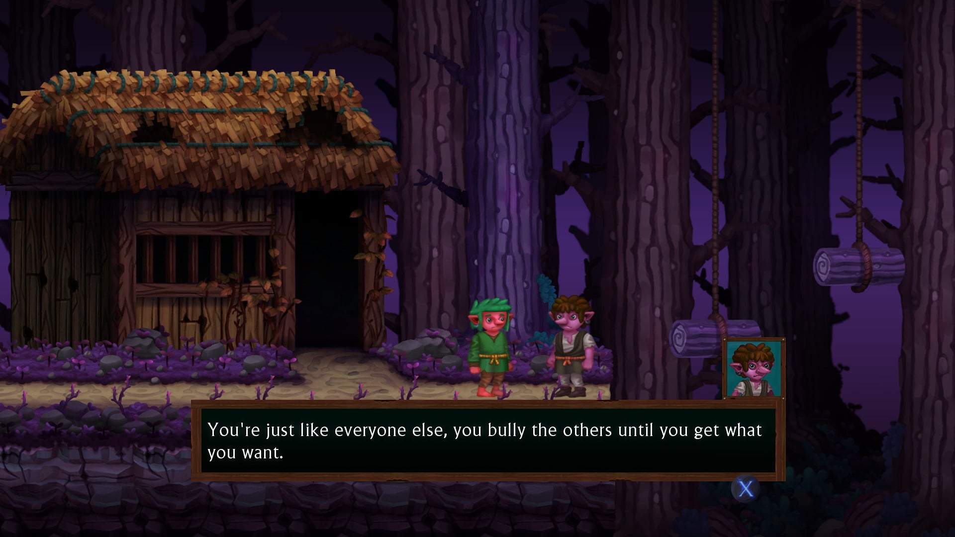 As mentioned above, The Path of Motus is surprisingly a rather deep game if you obtain all the notes, take in the messages it is giving out, and take on board what is being portrayed through this rather cute indie puzzle-platformer. You play the role of our protagonist, Motus, a young goblin who lives within a village with other goblins who have been trapped in a mysterious forest for generations. Every single goblin who chooses to venture out into the forest becomes defeated and they always return back to the village depressed and shot down.