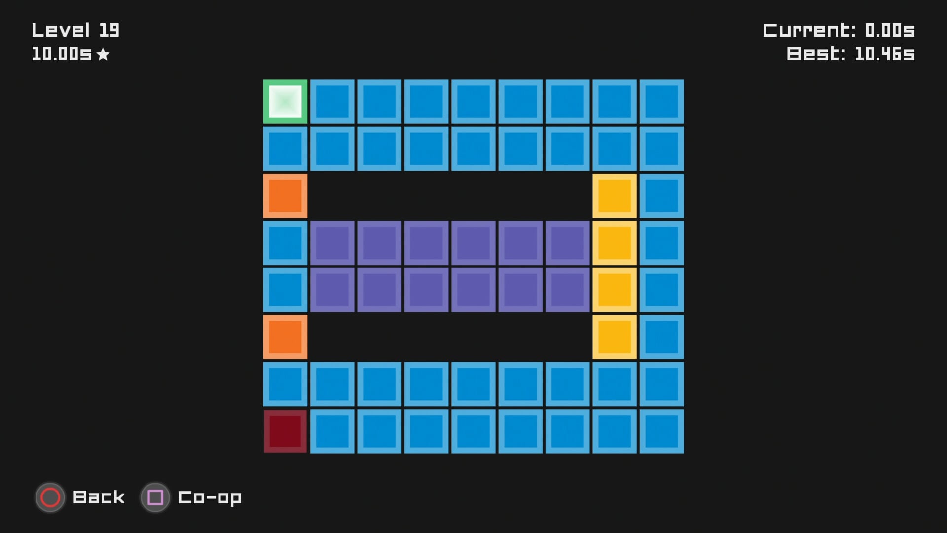 The object of the game is to clear all of the ‘blue’ tiles, as you can see in the image above, and then land on the red tile – so you must plan your journey precisely so you have safe passage to the red square upon eliminating the blues. However, as explained above, you have to look out for the soul-crushing nasty tiles who are there to make your time harder, as well as a few who actually help you out. As each new level begins, I would advise you to take a moment to look at it and visualise the route you wish to take – The timer is there for PSN trophies and the scoreboard so you don’t have to worry about that but once you step on a blue tile you have about 2-3 seconds to move until it vanishes.
