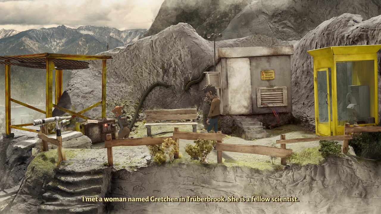 Hans deserves a relaxing break from all of the work he’s been doing back home, it’s a shame he won’t find that here in Trüberbrook! After a brief run-in with an intruder who has stolen some of his research documents, Hans joins up with Gretchen, the scientist he met previously, in order to seek out this unknown person and retrieve that which is his. Thus begins our adventure, you’ll be tasked with repairing machinery, escaping from a looney-home, solving ancient puzzles, and uncovering a mystery that spans beyond the laws of physics.