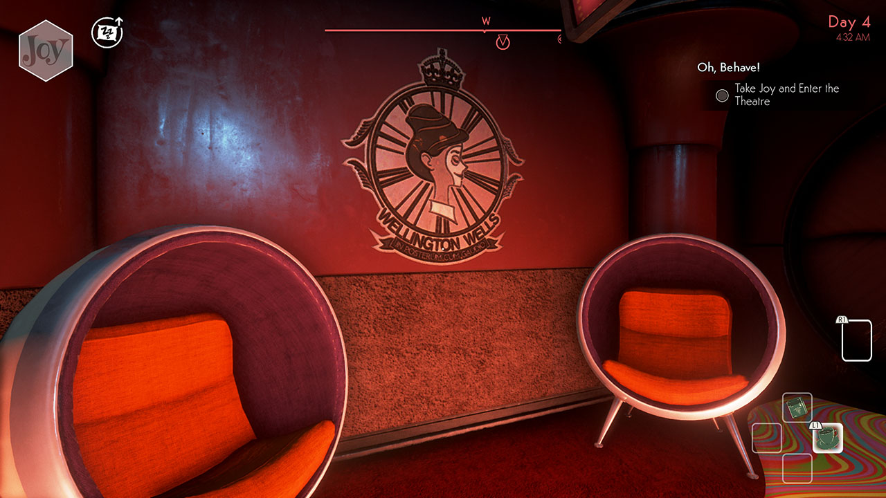 However, after a few days break and a chat with my friend about my experiences so far, I realised I had been playing the whole game wrong within the town! I thought that whilst you’re in the town you had to constantly remain high on Joy in order to walk around unnoticed, as every time I wasn’t taking Joy I was instantly called out, chased down, and beaten to a pulp. What I didn’t realise is, that was only because I was taking Joy and then going into withdrawal as soon as it ran out! If you wait a little while longer – in a dustbin for cover, then you can walk around freely without having ingested any Joy as long as you don’t stare, jump or run! This meant I could explore the town more freely and actually experience everything We Happy Few had to offer.