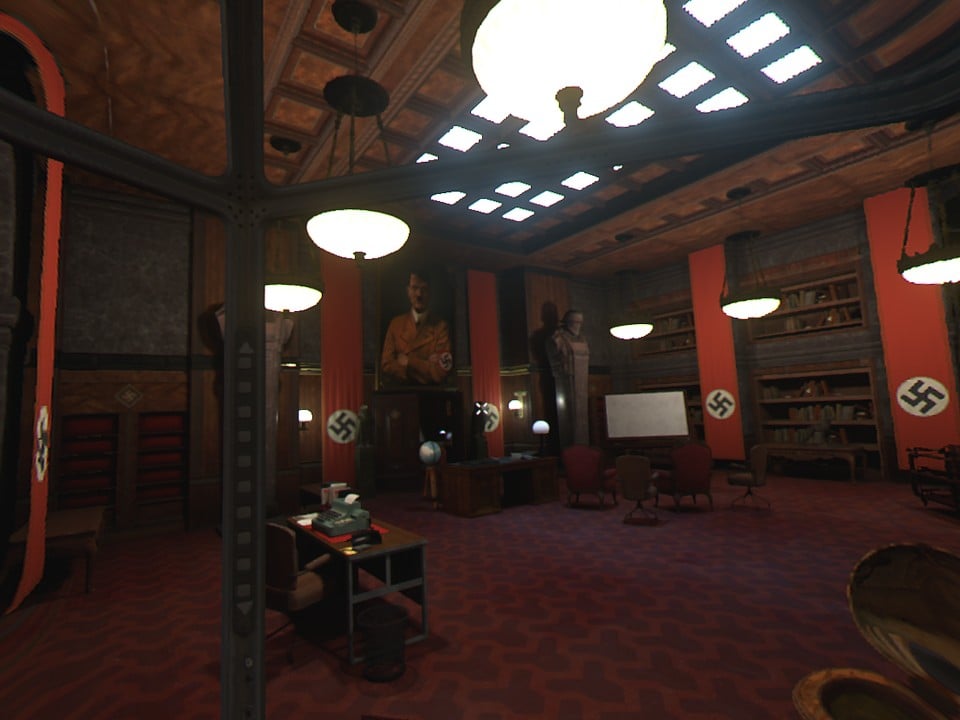 In terms of the VR experience overall, I thought the visuals were pretty good for a PSVR title. When out in the field, I could clearly see the combustible Nazis as I set fire to them and watched them burn. However, when you’re not in motion, there’s a strange thing going on with the visuals. I noticed this within the office segments where you have the machines dangling in front of you like meat on a rack. As I sat there, looking at a Panzerhund held up like a cat by the scruff of its neck, I thought my eyes were going strange as one second the game is super clear, then a little blurry, then clear, then blurry… I don’t know if this is some sort of dynamic resolution or injection method which could be causing the strange behaviour, as the main game has a few dynamic resolution options, but I found it a little unusual. You won’t notice it in the combat segments though.